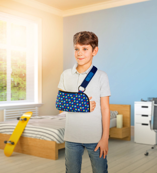 Actimove® Mitella for Kids is a child-friendly arm support with a fun and colorful pocket to make kids, parents and clinicians smile. It provides stable support with universal pediatric sizing, fitting most smaller patients.