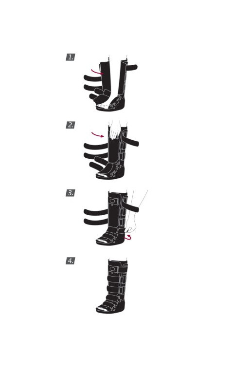 The product is designed to stabilize and protect the lower leg, ankle and foot. Fields of application include: – Stabilization of fractures of the foot and ankle – Soft tissue injuries of the lower extremity – Severe ankle sprains – Stress fractures of the lower leg – Postoperative rehabilitation and trauma