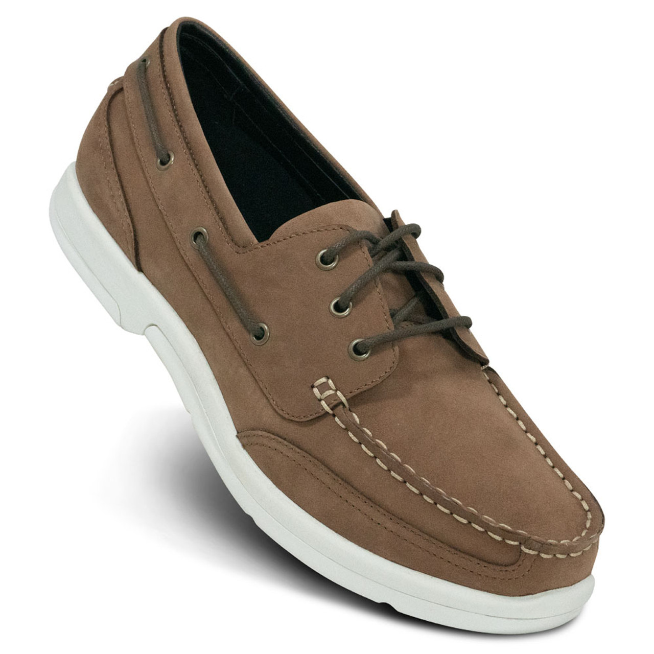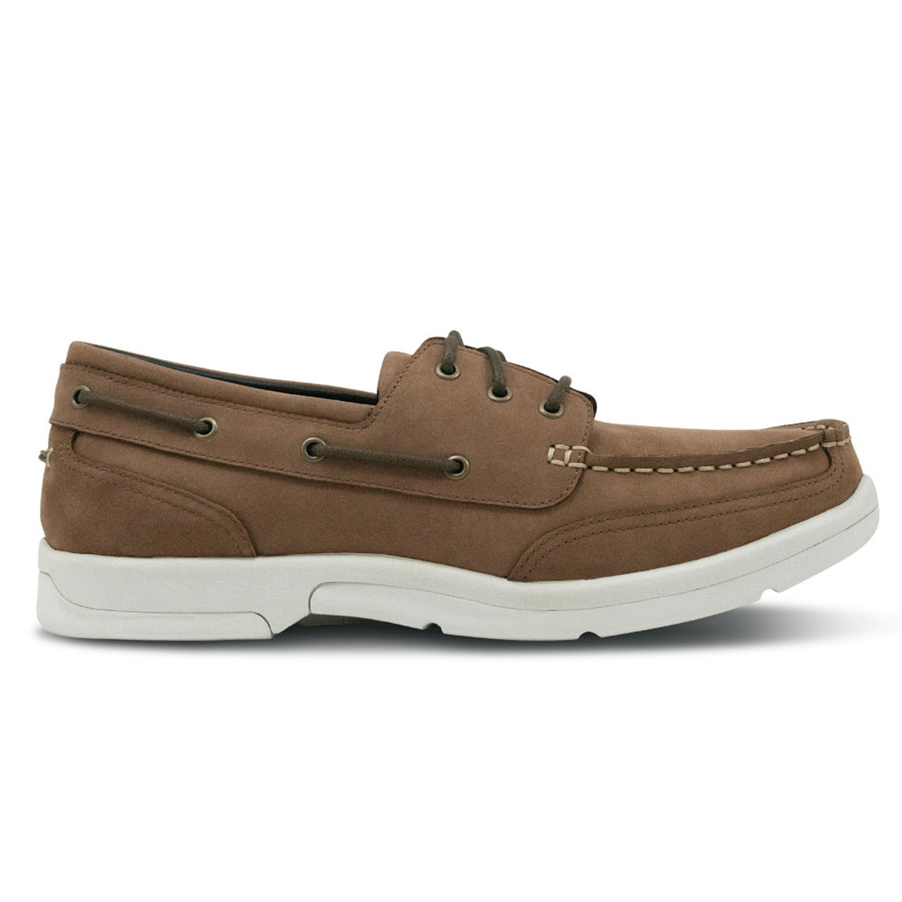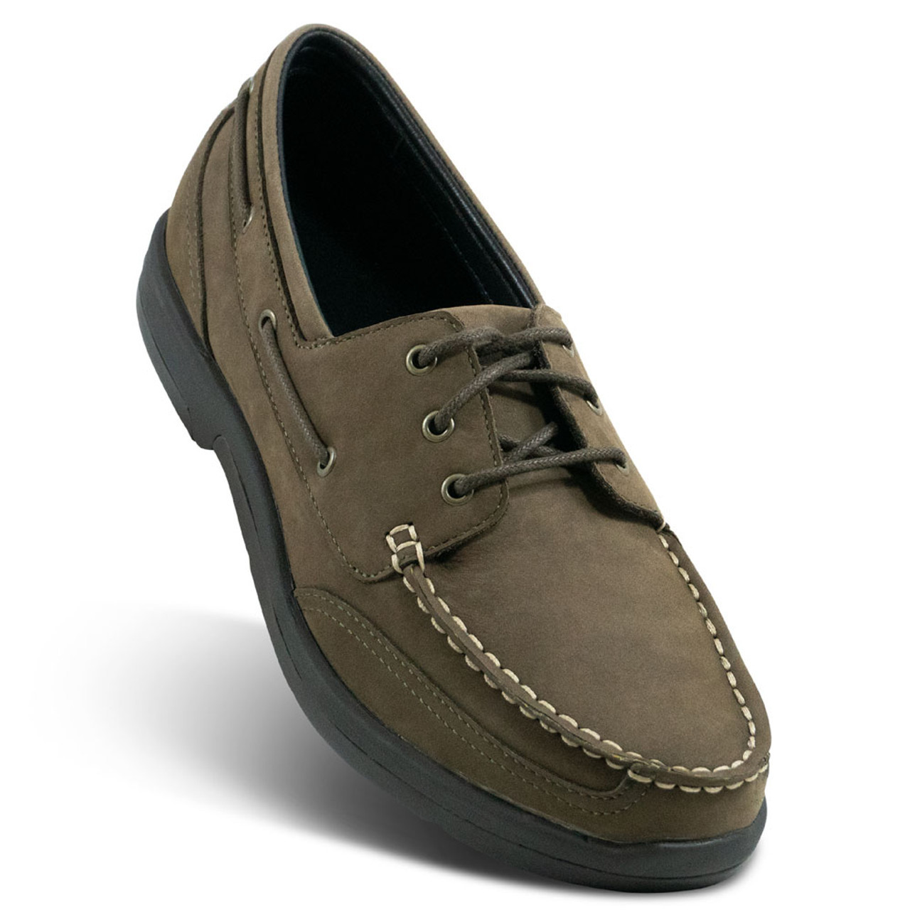Improving upon a timeless classic, the Apex® Men's Orthopedic Boat Shoe brings this footwear category into the 21st century with the infusion of innovative materials, the latest foot health technologies, and customizable features. Capable of dressing up a pair of jeans or adding a dash of style to business attire, these shoes don’t just look good – they feel good, too. A comfy, lightweight EVA midsole absorbs shock to keep feet pain free, while a firm heel counter and slip resistant outsole, which exceeds SATRA and Mark II standards, provides stability. Handsome nubuck leather with hand-sewn stitching adds durability and style, while moisture-wicking mesh liners ensure feet stay cool and dry. Finally, an added removable depth insert allows for a truly customized fit, along with the ability to accommodate orthotic inserts.
