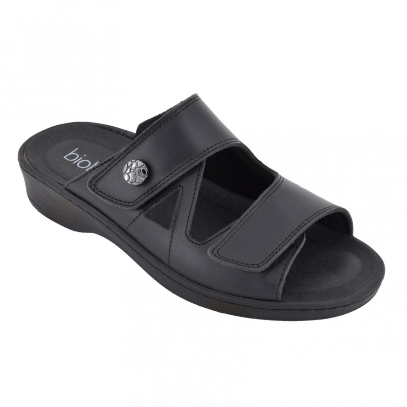 The Biotime Jenny Women's Sandals offer a smart combination of comfort, flexibility, and support. Designed with a soft blend of genuine leather and stretch fabric, these sandals gently adapt to your foot shape while providing a breathable, irritation-free fit. The Biofresh® lining helps control moisture and odor, keeping your feet fresh all day. Two adjustable hook & loop closures make it easy to find your perfect fit, while the removable contoured cork insole provides ergonomic support. Finished with a lightweight and durable PU outsole, the Jenny is ideal for everyday wear, especially for those seeking gentle yet reliable support.
