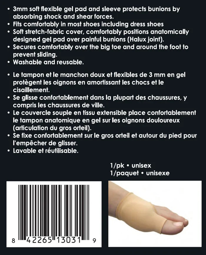- Soft stretch-fabric cover comfortably positions anatomically designed gel pad over painful bunions (Hallux joint)