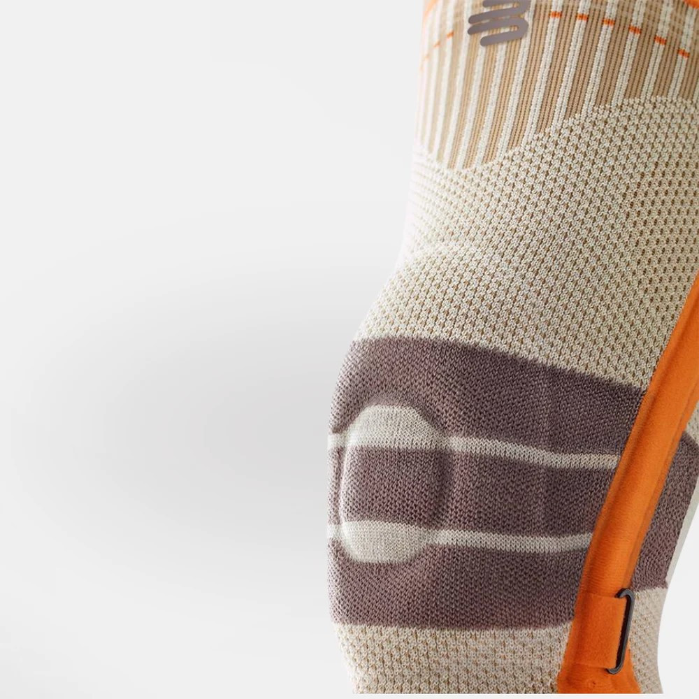 Merino Knee Brace – Compression Support with Omega Pad, Adjustable Patellar Strap & Temperature-Regulating Merino Wool. Designed to relieve and stabilize the knee joint, this brace combines anatomical support with all-day comfort. The integrated Omega pad cushions and supports the kneecap, reducing pressure and distributing impact force evenly. For added relief, an adjustable strap targets the patellar tendon to help reduce strain and enhance joint stability.