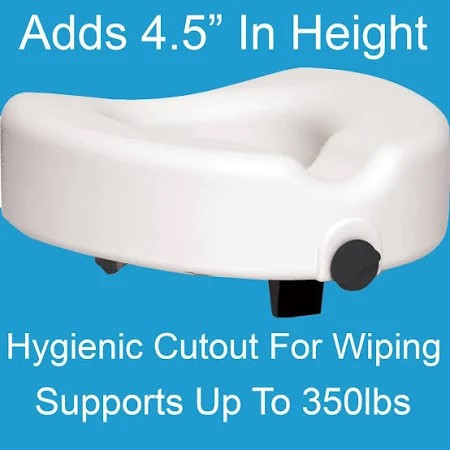 - Adds 4.5" of height to the toilet seat. Ideal for individuals with arthritis, injury recovery, or limited mobility who struggle to sit down or stand up.
