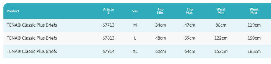 TENA Classic Plus Briefs are designed for individuals with moderate to heavy bladder leakage and mild bowel incontinence. These high-performance briefs feature the InstaDri Skin-Caring System® that rapidly draws moisture away from the skin to help maintain dryness and comfort. With fully breathable side panels and a secure hook & loop fastening system, they offer a customizable fit while supporting skin health. A wetness indicator on the outside of the brief helps caregivers or users know when it’s time for a change.