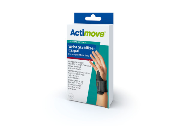 The Actimove Wrist Stabilizer Carpal offers anatomical shape for correct positioning with full finger movement and hand dexterity. Supports pain relief and healing through balanced warmth and medical compression.