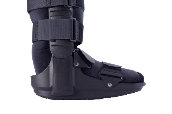 Walker with circumferential strapping for increased stability. Designed to stabilize and protect the lower leg, ankle, and foot. Features a dense foam lining within the sole to provide comfort and support.