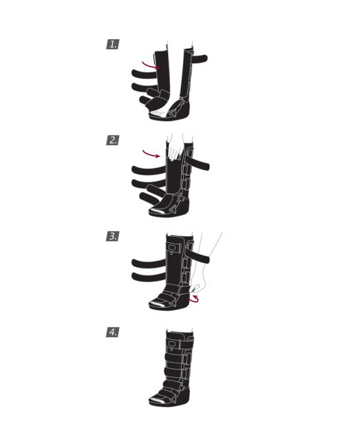 The product is designed to stabilize and protect the lower leg, ankle and foot. Fields of application include: – Stabilization of fractures of the foot and ankle – Soft tissue injuries of the lower extremity – Severe ankle sprains – Stress fractures of the lower leg – Postoperative rehabilitation and trauma
