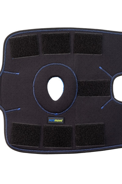 Your knees bear a significant load during the day, especially if you have an active life. Actimove Sports Edition Knee Support Open Patella can help relieve pain if you experience knee injuries, such as slight strains, sprains, contusions, minor meniscal damages, joint swelling, or if you want to prevent re-injury. Enjoy sports, as pain relief and healing are supported through balanced warmth and medical compression. Confidently work out, run or cycle, as this sleeve doesn't overly restrict movement. Made with a neoprene-free, lightweight, elastic, perforated material that uses COOLMAX AIR technology, it is quick drying and moisture-wicking to keep you cool and dry so you can keep sporting in comfort and style. This product can be used by those allergic or sensitive to latex, as it does not contain natural rubber latex. The sleeve has a fast and easy slip-on style, so you can put it on easily, while its snug fit will keep it in place and will securely protect your knee when you exercise. To choose the correct size, sit on the edge of a chair, bend your knee at a 120° angle and measure the circumference of your thigh 4″ up from the middle of your kneecap.