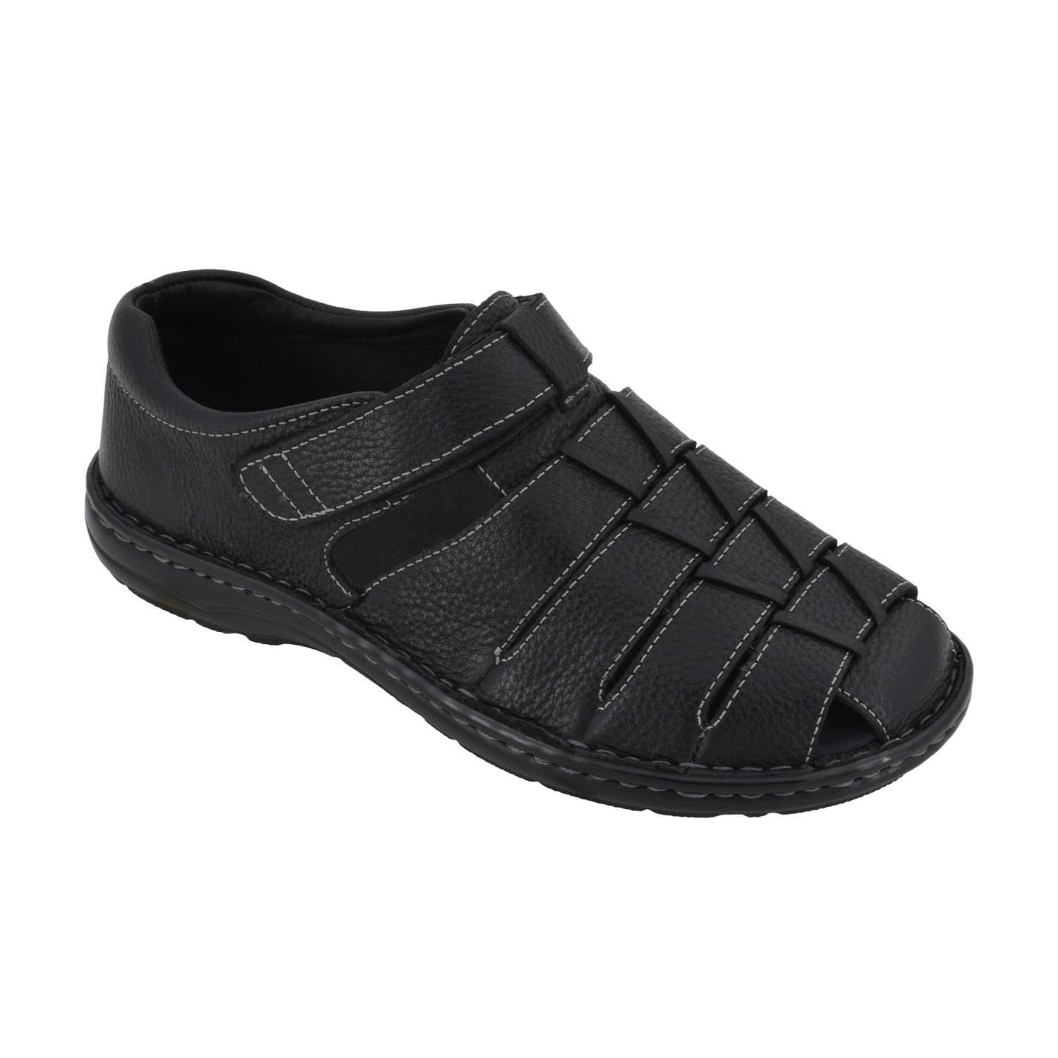 The Biotime Fisher Men's Sandals deliver classic comfort with a durable design, perfect for everyday wear. Featuring a genuine leather upper and soft fabric lining, these sandals offer a breathable fit and a touch of sophistication. The adjustable hook & loop closure ensures a secure, easy-to-adjust fit, while the removable microsuede-covered contoured PU insole provides cushioning and arch support. A lightweight, hand-stitched PU outsole adds durability and flexibility, making the Fisher an excellent choice for relaxed, all-day wear.