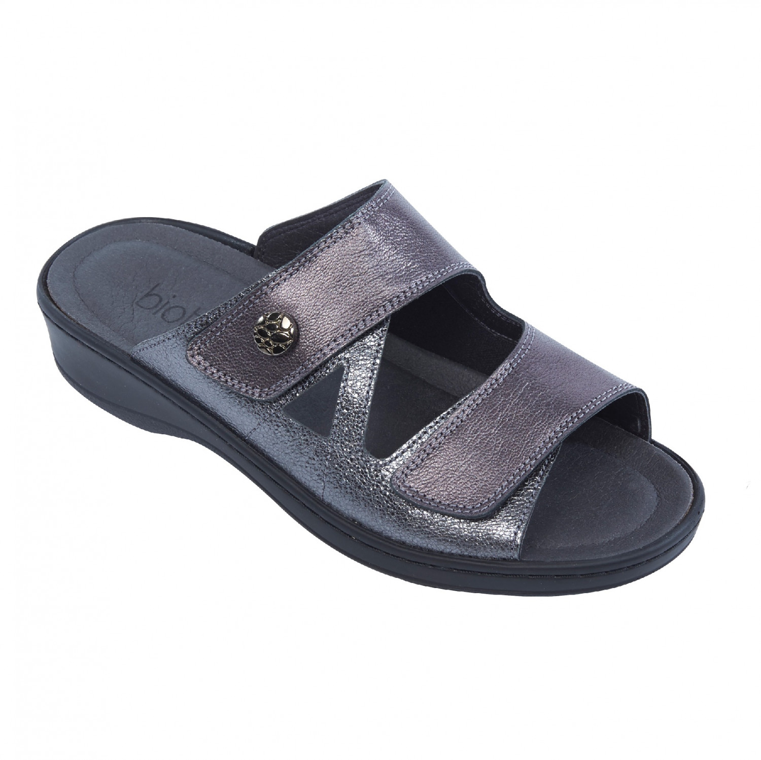 The Biotime Jenny Women's Sandals offer a smart combination of comfort, flexibility, and support. Designed with a soft blend of genuine leather and stretch fabric, these sandals gently adapt to your foot shape while providing a breathable, irritation-free fit. The Biofresh® lining helps control moisture and odor, keeping your feet fresh all day. Two adjustable hook & loop closures make it easy to find your perfect fit, while the removable contoured cork insole provides ergonomic support. Finished with a lightweight and durable PU outsole, the Jenny is ideal for everyday wear, especially for those seeking gentle yet reliable support.