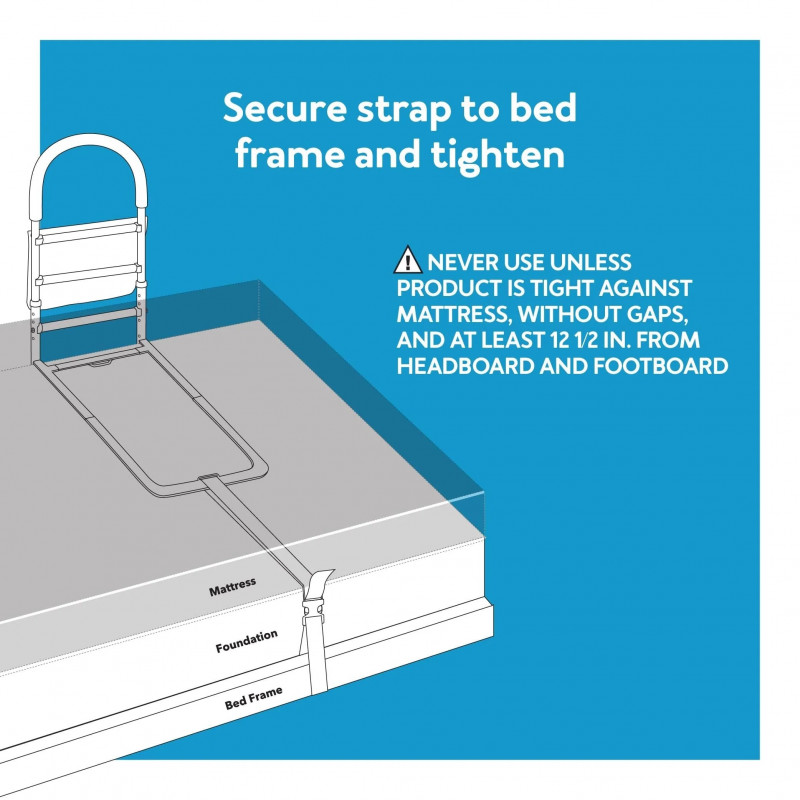 - Functions as a bedside rail and safety handrail. The 2-in1 versatile design allows the bed frame rail to be a source of support and a fall prevention device. The under mattress bed rail keeps users from falling out of bed.