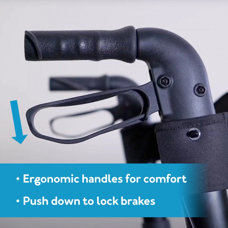 - Locking brakes for use when seating. The added safety of locking brakes means you won't have to worry about the mobility walker rolling while seated.