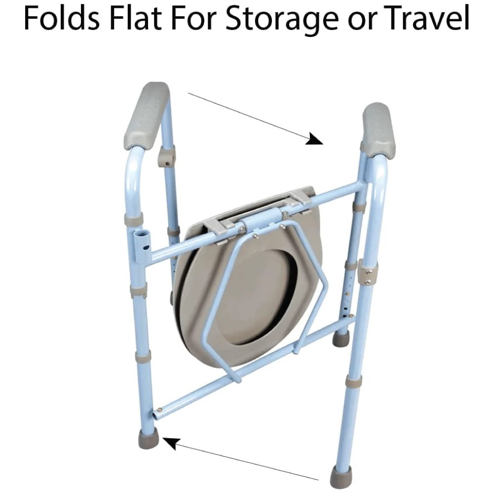 The Deluxe Folding Commode is perfect for those who are short on space. It can be used in three ways: as a stand-alone toilet commode, a raised toilet seat, or a toilet safety frame. This full-size steel commode folds compactly for storage or easy travel and comes complete with a commode bucket, splash guard, and cover. It also includes a trial pack of our Commode Liners.