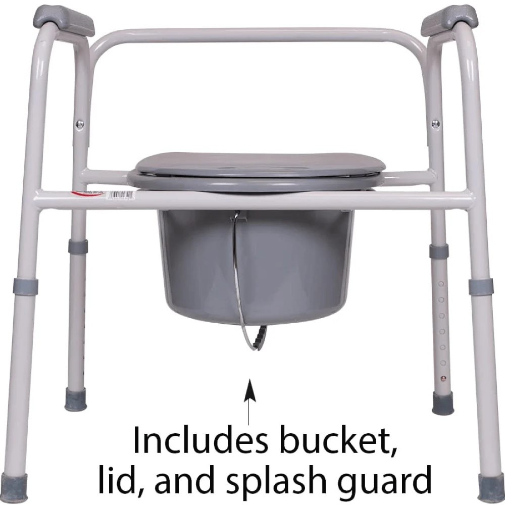 - A 3-in-1 commode. The portable commode chair offers a new level of flexibility. It can be used as a portapotty for camping, a raised toilet seat, or a toilet safety frame.