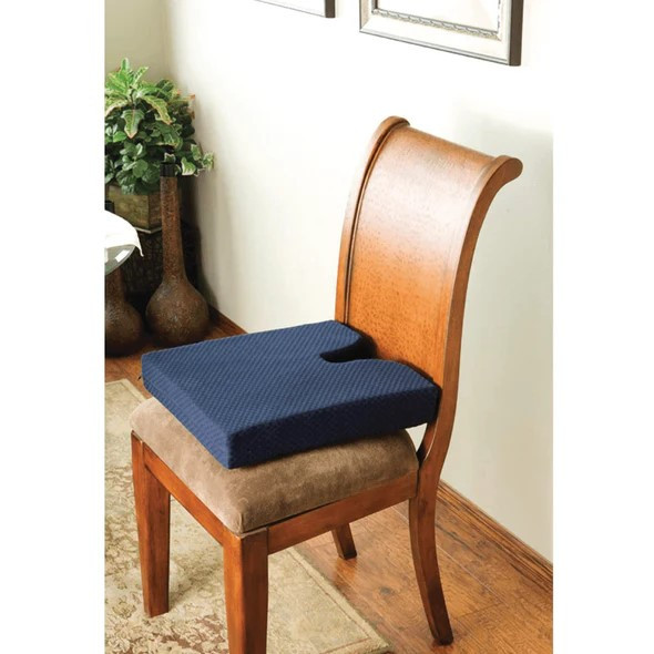 - Reduces tailbone pressure for a more comfortable seat. Our chair support cushion uses memory foam for comfort and a cutout design to take pressure off the tailbone. Perfect for anyone with sensitivity to hard surfaces or sitting for long periods.