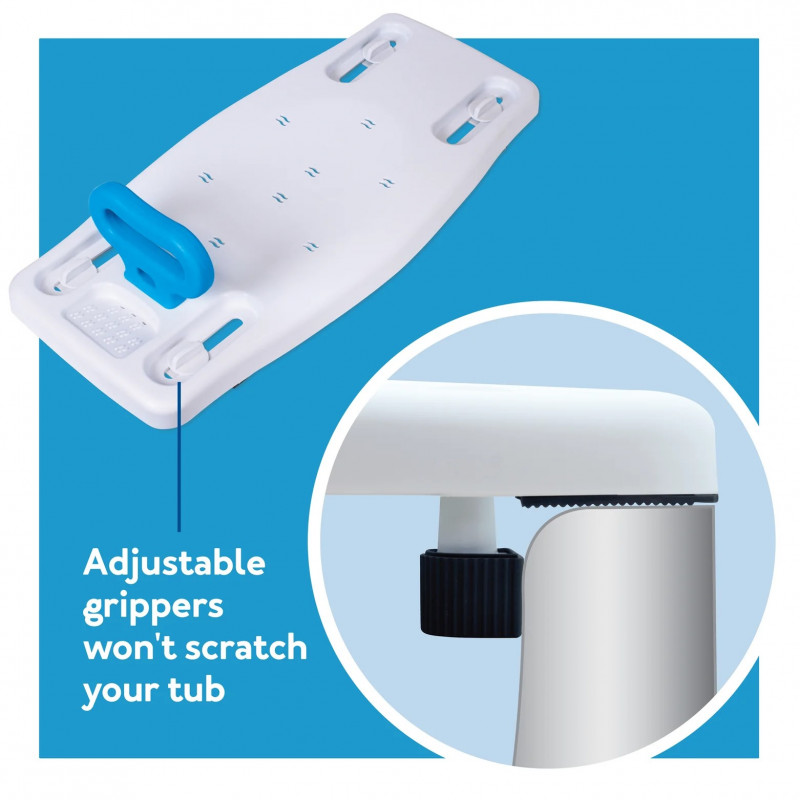 - Makes transferring into the tub easier. The extended bath bench makes getting in and out of the bath easy and quick. Sit on the outside part of the bench and slide the legs around to the inside bath side. The bench is designed with safety and comfort in mind to make bathing for older adults and those with disabilities easier.