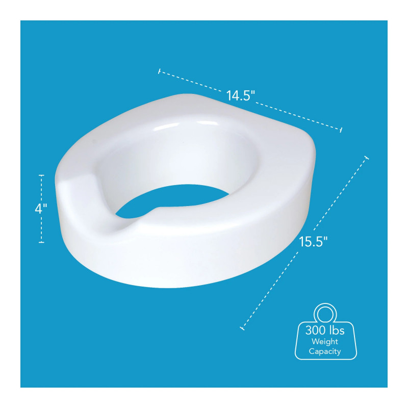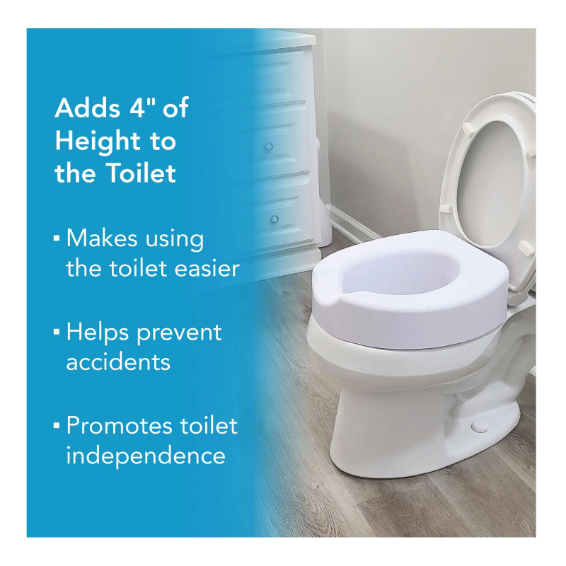 - Adds 4" of height to the toilet seat. Adds enough height making it a perfect toilet seat life for elderly persons.