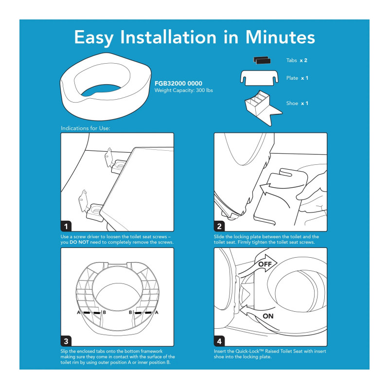 - Easy to remove and install. Innovative Quick-Lock system safely secures raised seat to the toilet and allows easy removal when not in use.
