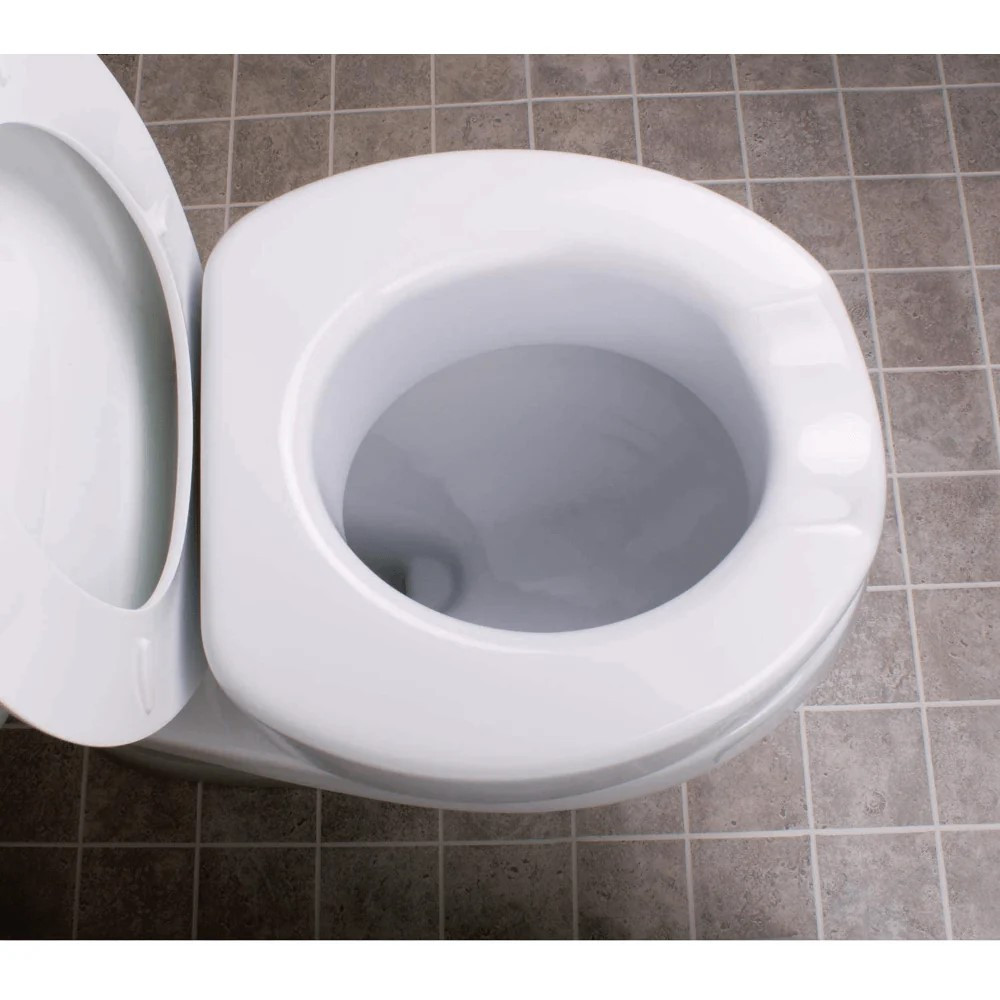 The Carex Quick-Lock Raised Toilet Seat is the perfect solution for anyone needing assistance with bending or sitting. The toilet elevator features an innovative system to secure the toilet seat riser to the toilet safely. It adds an additional 4 inches of height when secured, and it features an extra-wide opening and a large front cutout. The raised seat is simple to remove for cleaning or when not in use without the use of tools. Fits most standard round and elongated toilets.