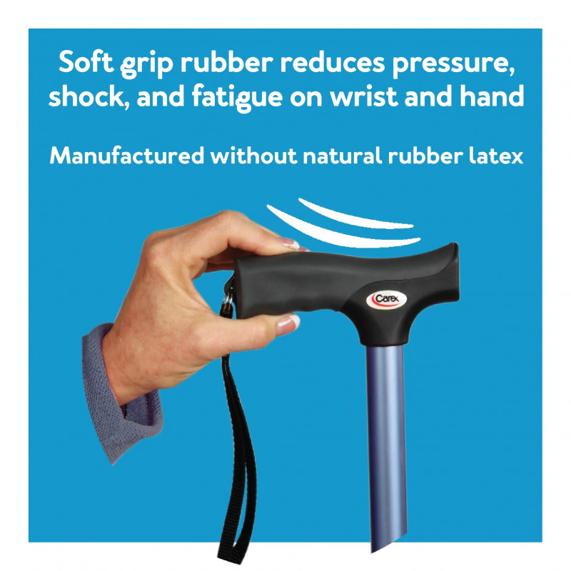 Featuring innovative technology that decreases shock and reduces fatigue in the hand and upper body, the Carex Designer Soft Grip Ergonomic Cane is adaptable for right and left-handed users. This ergonomic and anti-slip cane can be adjusted for height, and the handle is manufactured without natural rubber latex.