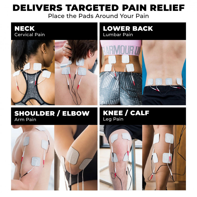 - Use up to four pads simultaneously for target pain relief. Our electric TENS unit features dual channels, allowing you to use up to four pads simultaneously. Each channel's intensity level is separate for better control. Target a large area or multiple areas at once.