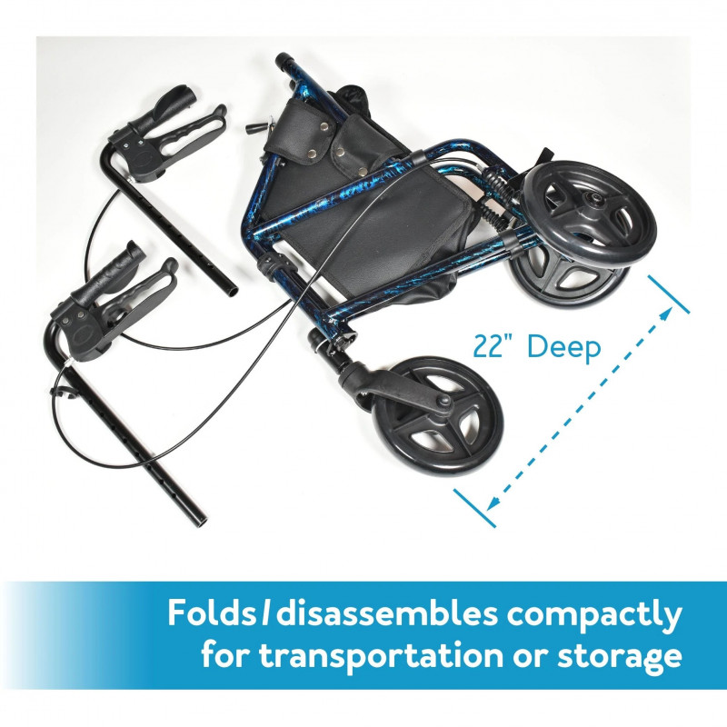 - Collapses quickly for storage and transport. The folding rollator makes storage in compact spaces such as car trunks easy and convenient. It's easy to fold for quick storage with no struggle.