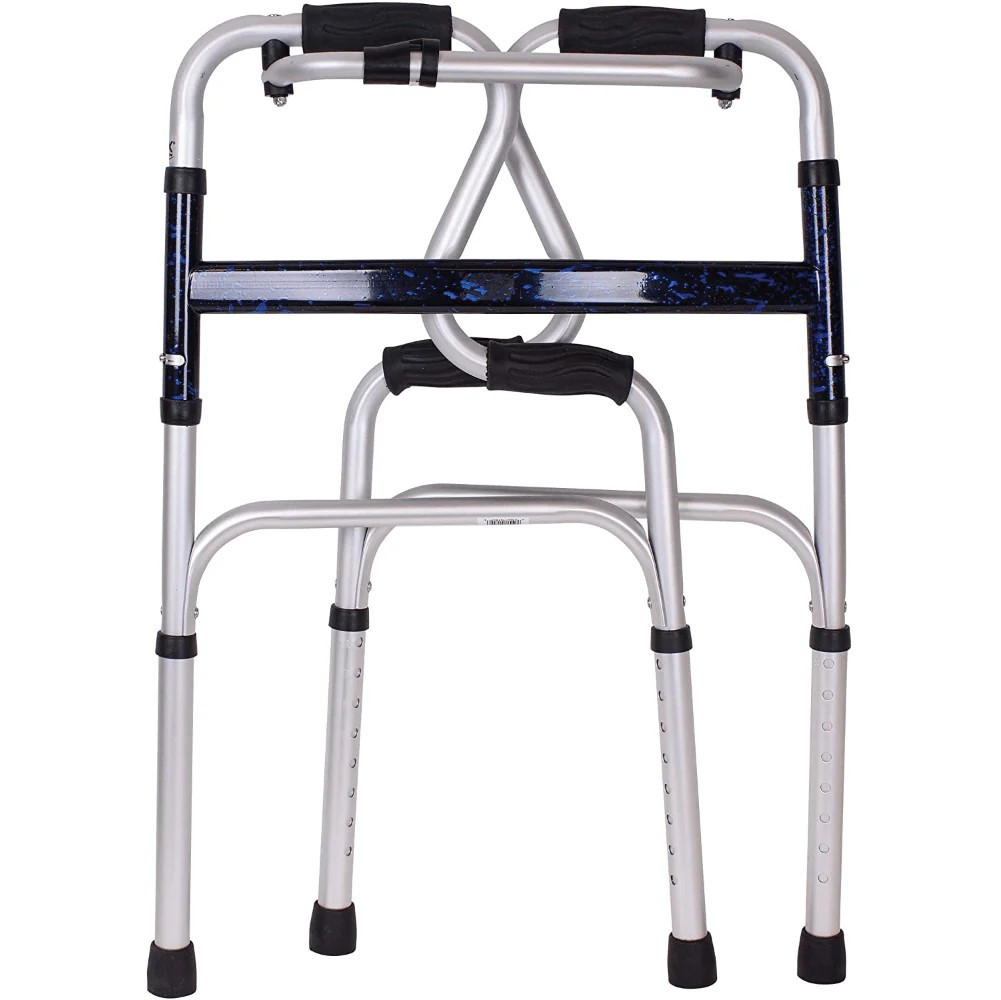 - Stylish and sleek. This medical walker is ideal for anyone wanting a sense of style from their walker. Its matte silver finish and blue crossbar make it stand out from other basic walkers.