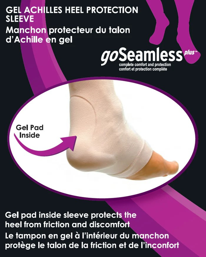 - Soft, comfortable gel pad protects the posterior of the heel from friction while gently compressing and reducing pressure around the heel area