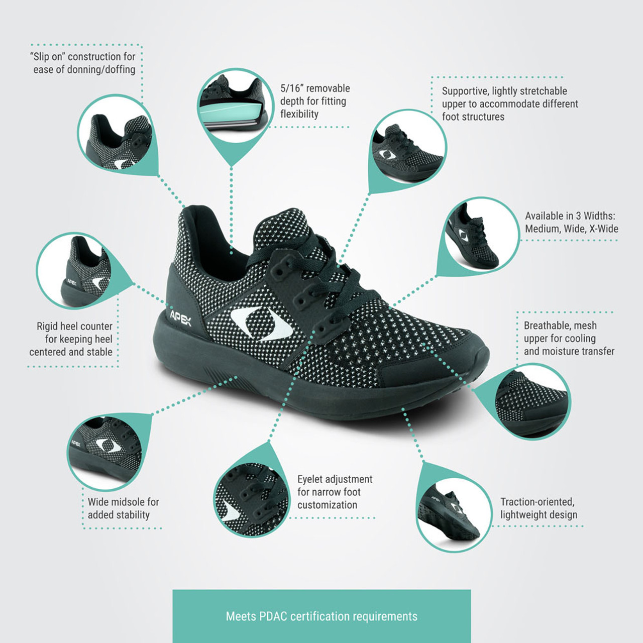 Look & Feel Great With Every Step - The Apex Performance Athletic Sneaker, the newest addition to the Apex Active Collection, is equally comfortable and stylish. The traction-orientated, lightweight design makes it perfect for day-to-day wear; the breathable, open mesh upper supports cooling and moisture transfer and the rigid heel counter helps to keep your heel centered and stable.
